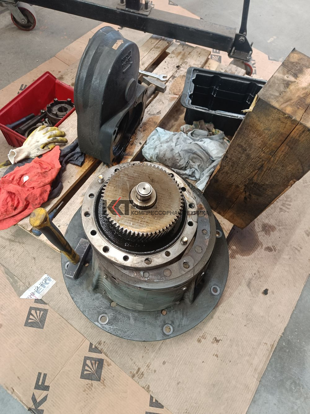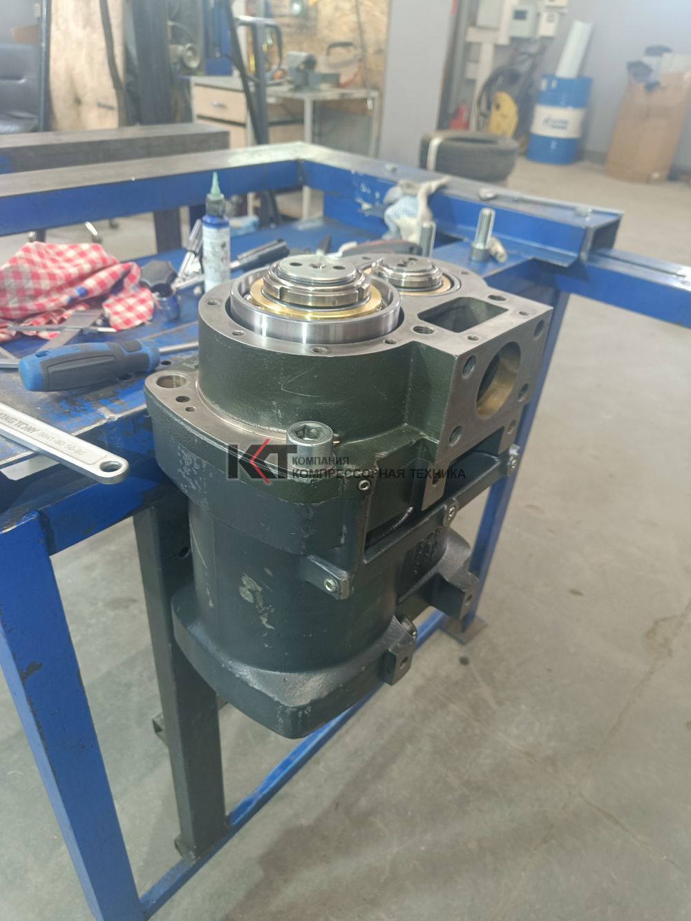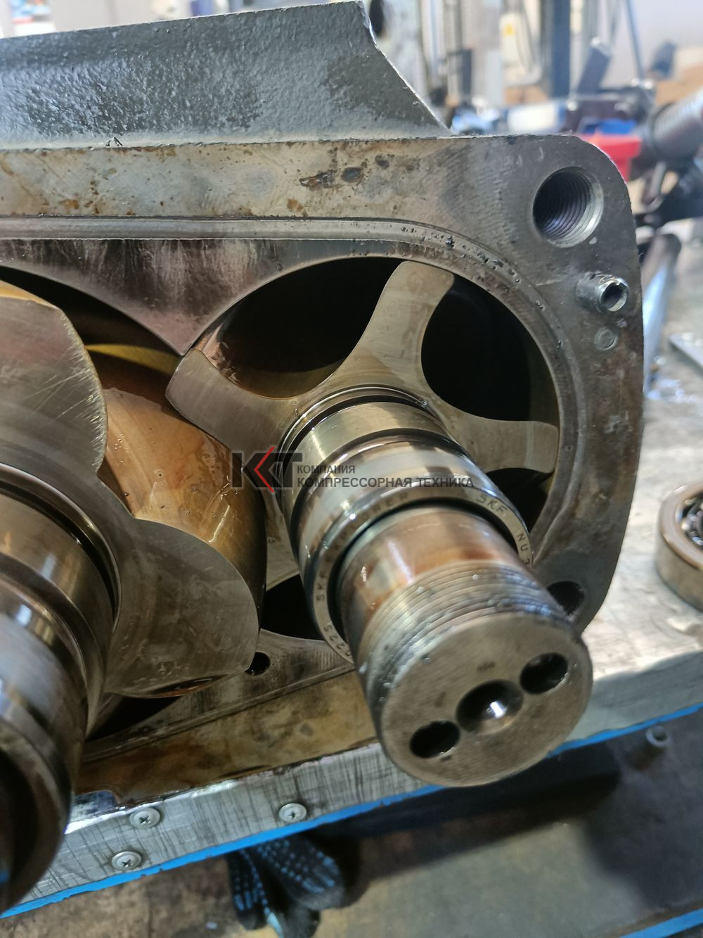 Проведены работы по капитальному ремонту винтового блока, с заменой подшипников ведущего и ведомого роторов, подшипников редуктора.