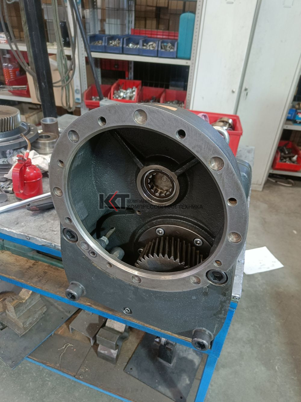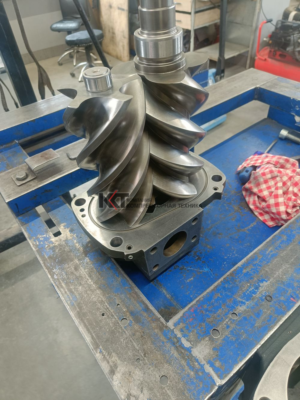 Мех.обработка изношенных поверхностей роторов и корпуса винтового блока, заменой уплотнения вала редуктора.